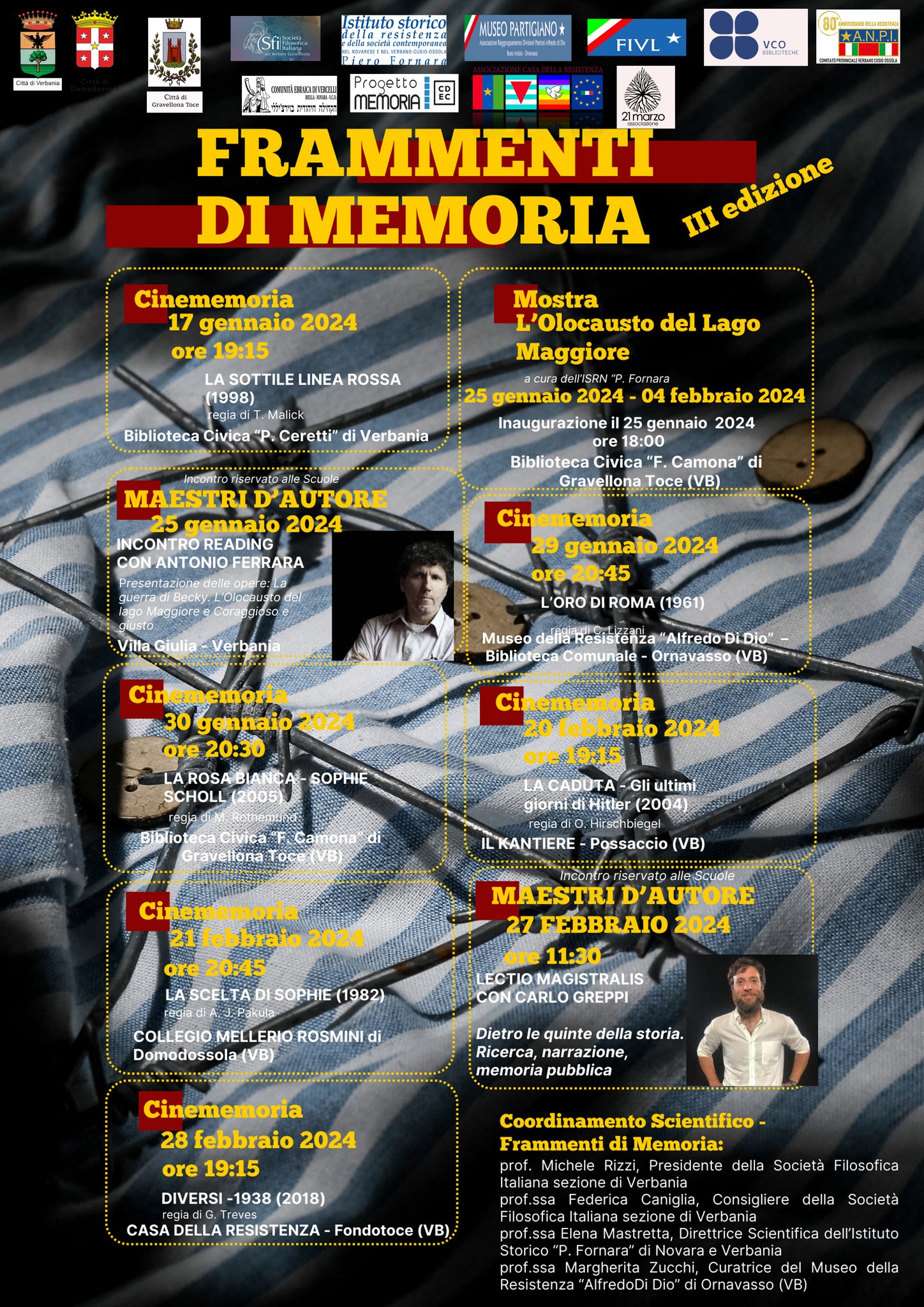 // Lunedì 29 gennaio 2024 alle ore 20.45 Al Museo della Resistenza "Alfredo Di Dio" - Biblioteca Comunale - Ornavasso